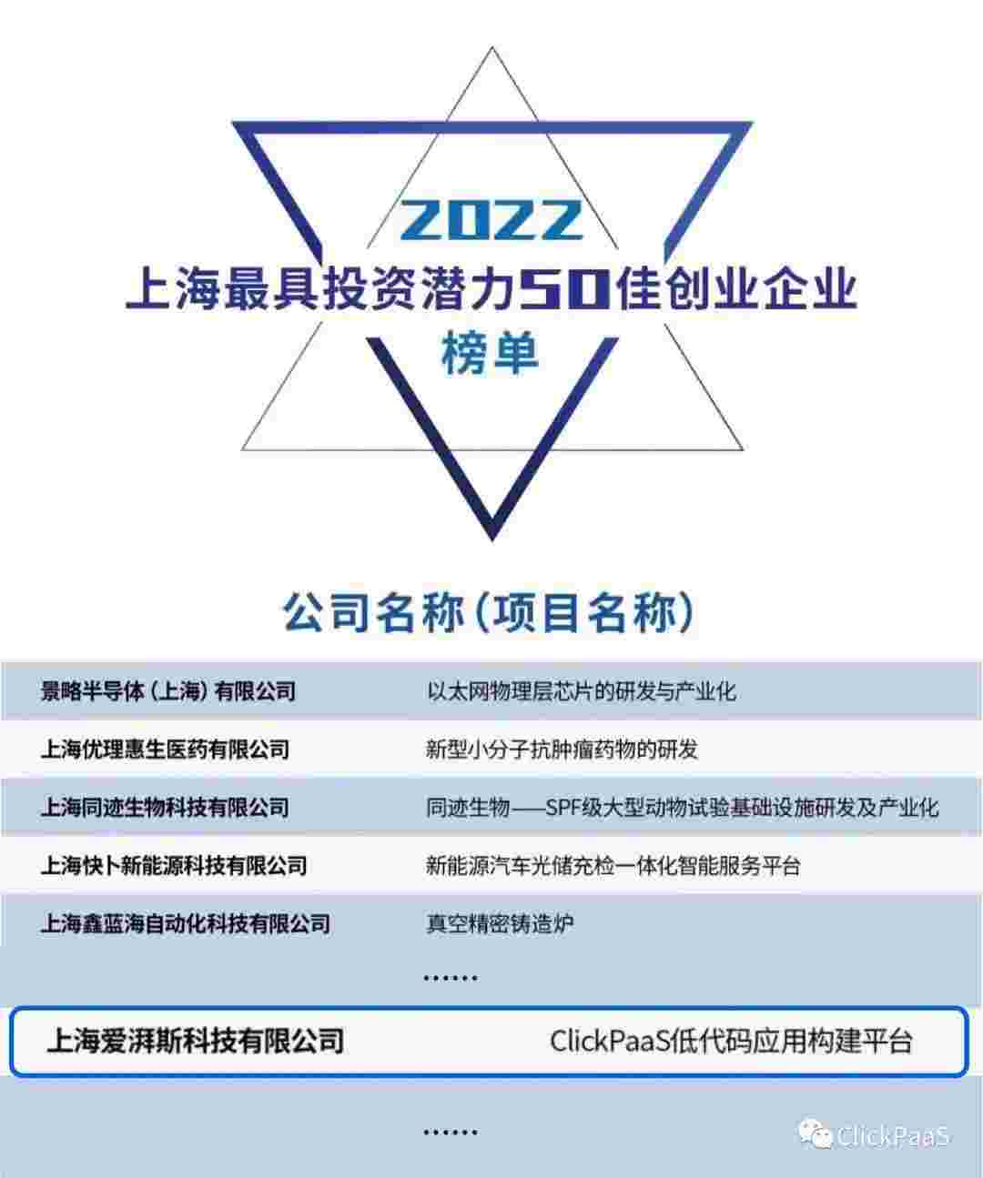CGPAY钱包 作为国内低代码PaaS平台的领军企业,,,与120家创企入围角逐。。期间接受了来自德同资本、、、、领中资本等知名投资机构的10位投资人组成专家评委团的背靠背盲选。。并最终入围“2022上海最具投资潜力50佳创业企业”榜单,,被列入“上海市重点培育创业企业库”。。